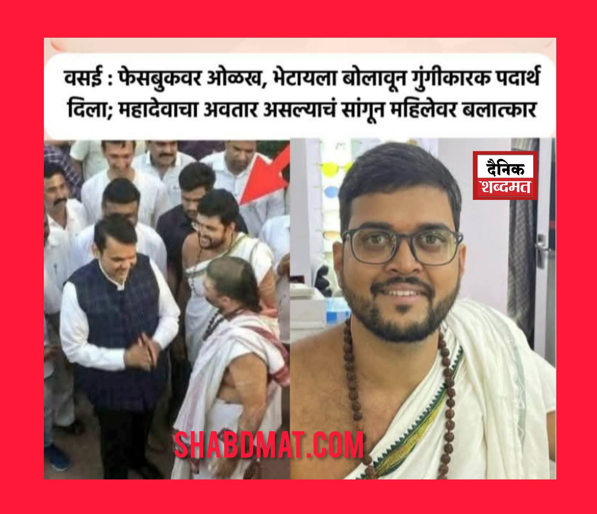 वसई : फेसबुकवर ओळख, भेटायला बोलावून गुंगीकारक पदार्थ दिला; महादेवाचा अवतार असल्याचं सांगून महिलेवर बलात्कार